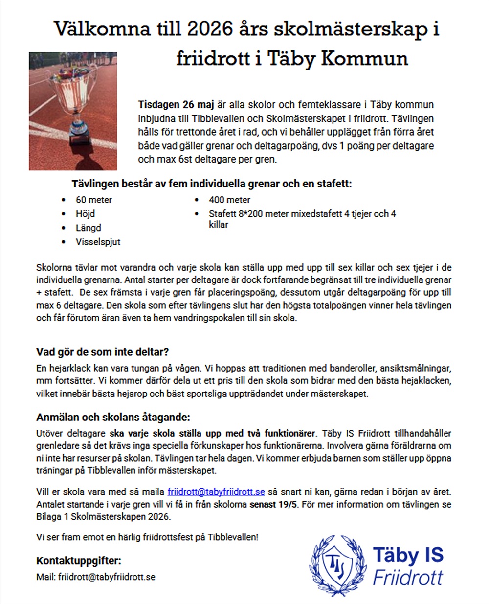 Nyhetsbrev Täby IS Friidrott inför 2026